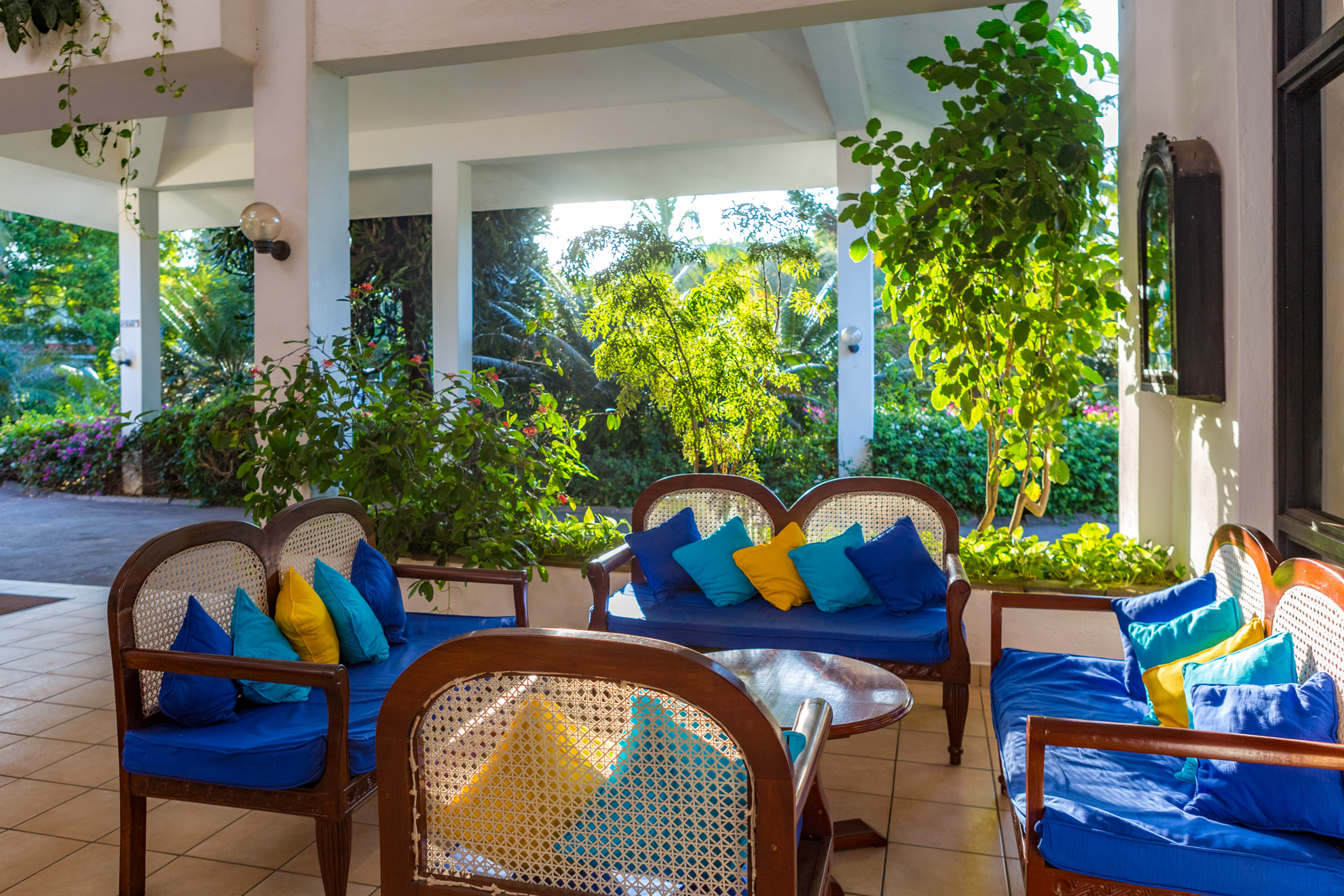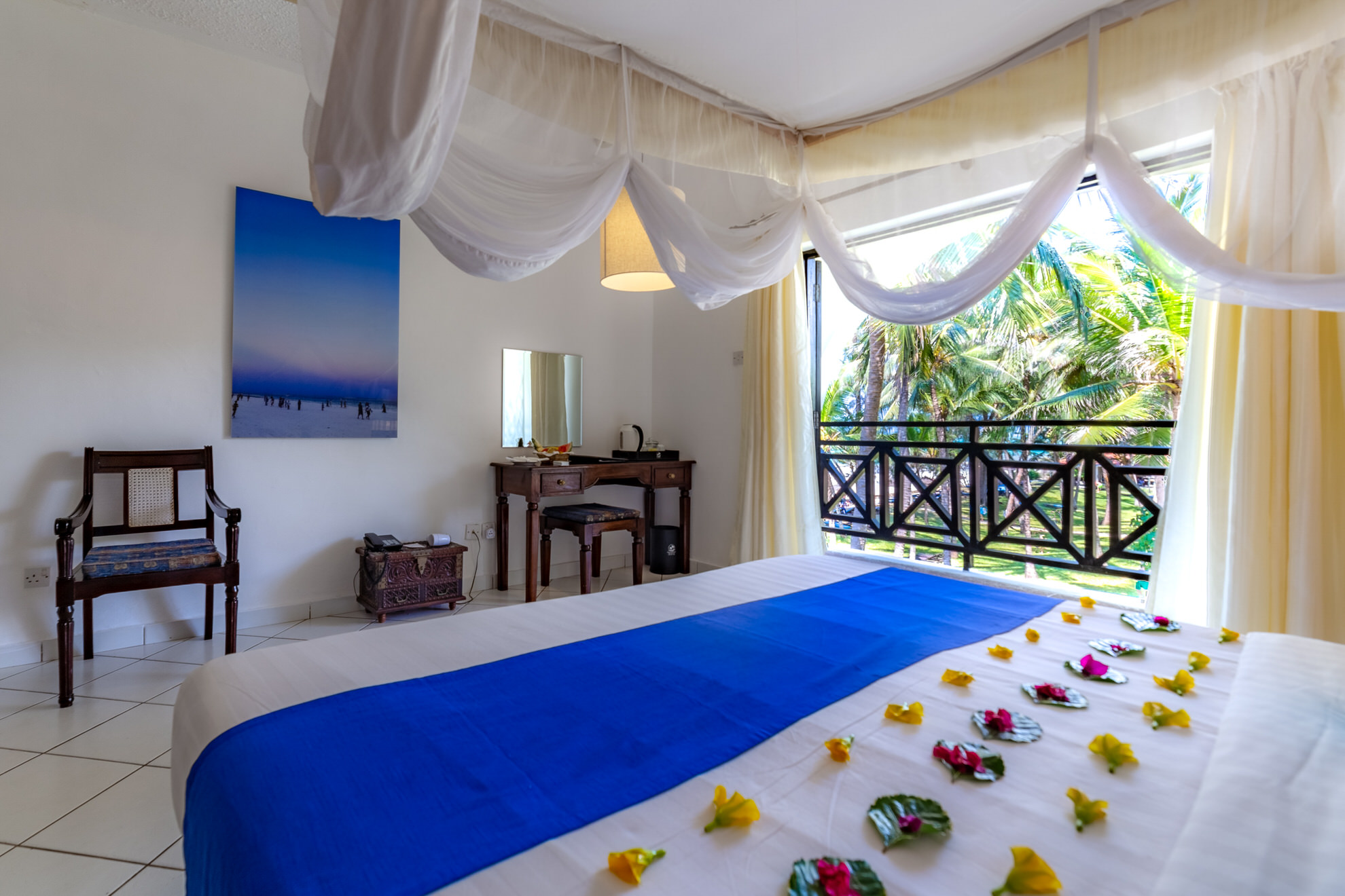 Guests are welcomed into breezy, bright rooms surrounded by blooming gardens, swaying palms, and gentle sea air.